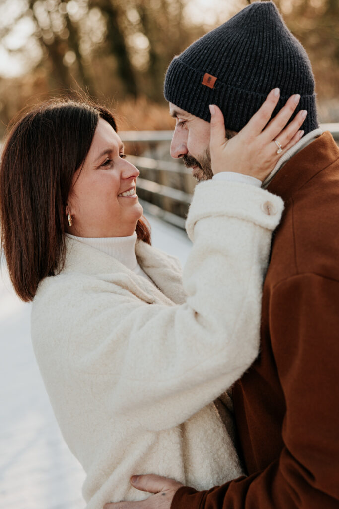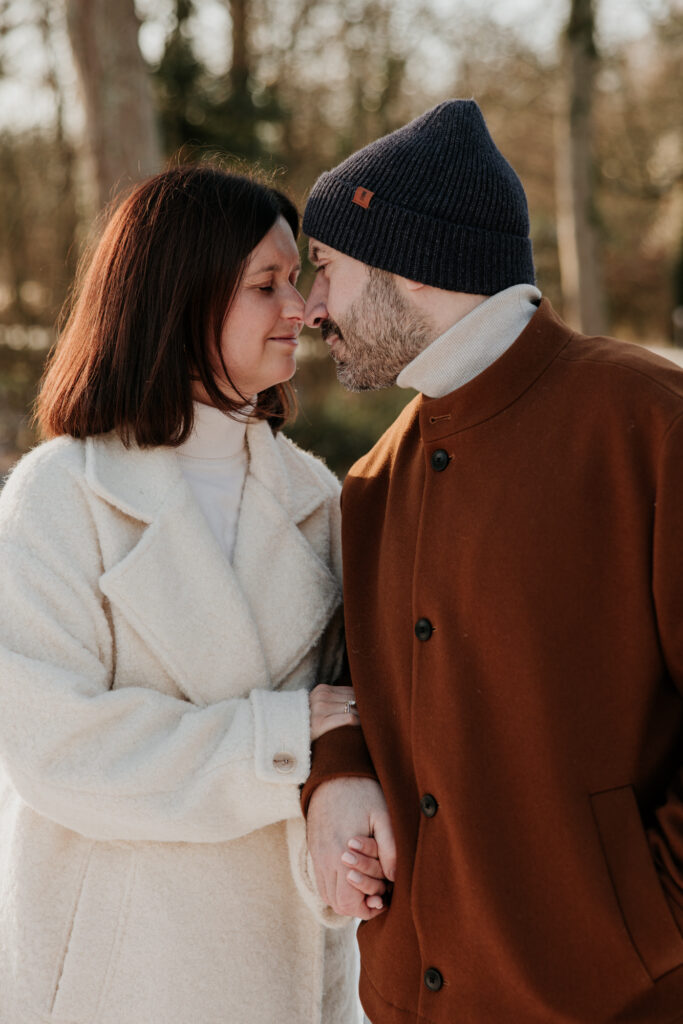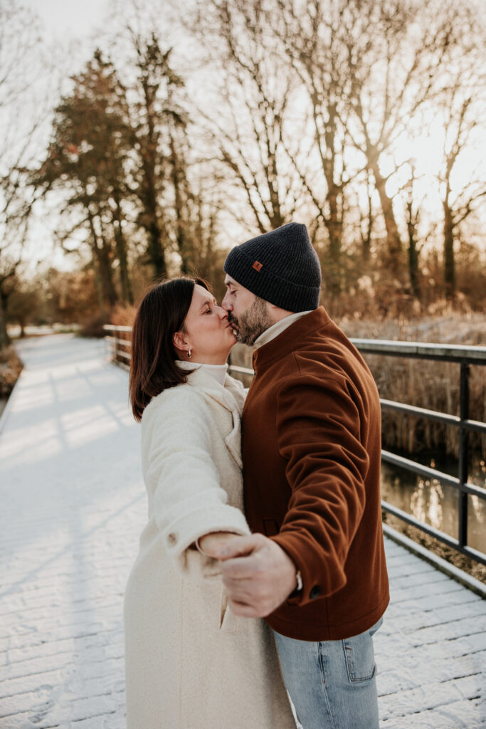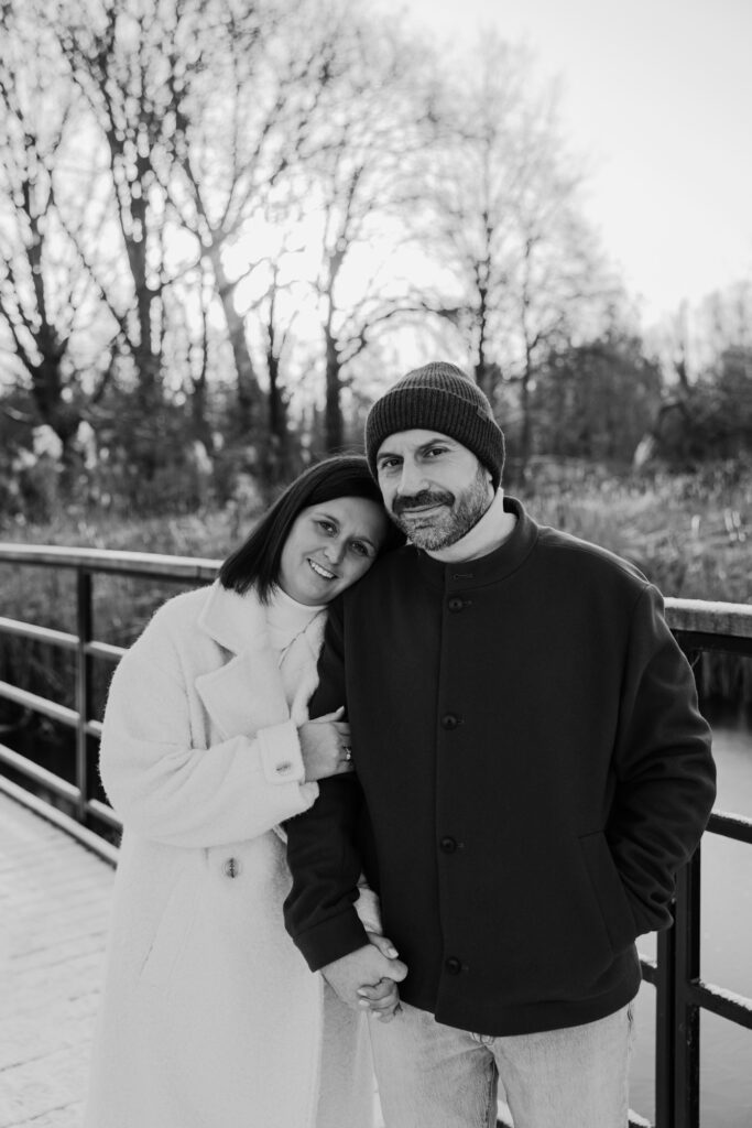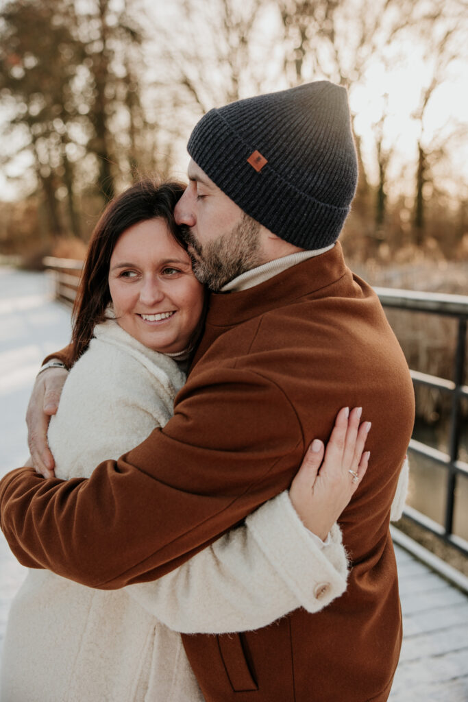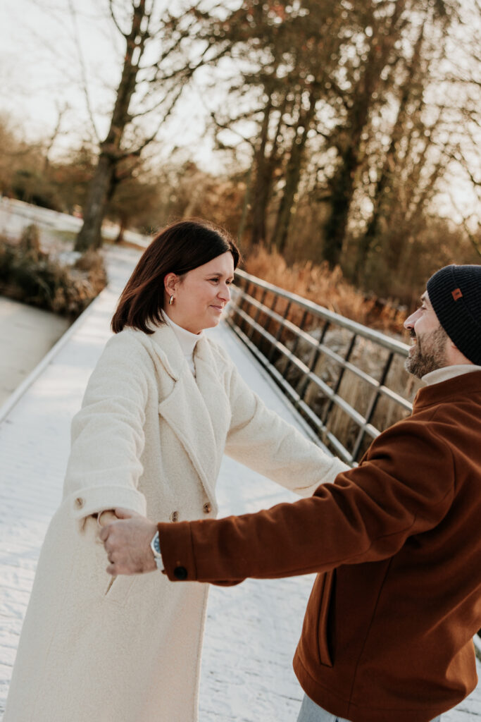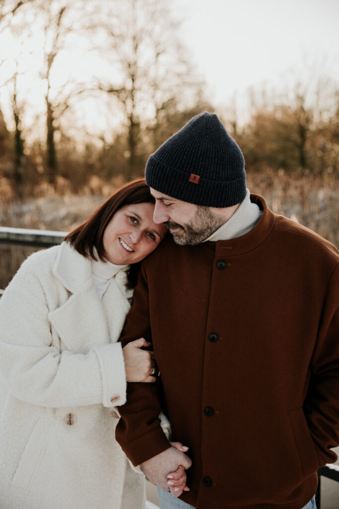 Op een prachtige – maar ijskoude – ochtend trokken we naar een heerlijk rustige locatie in het Mechelen. Het toevluchtsoord van dappere joggers en mensen die hun trouwe viervoeter moeten uitlaten, vormde het decor van de verlovingsshoot van Tinneke en Joeri. Enkele weken eerder was namelijk dé grote vraag gesteld, waarop het antwoord volmondig ‘ja’ luidde. Het nieuws aan de buitenwereld bekendmaken? Dat wouden ze graag doen met een fotoshoot.