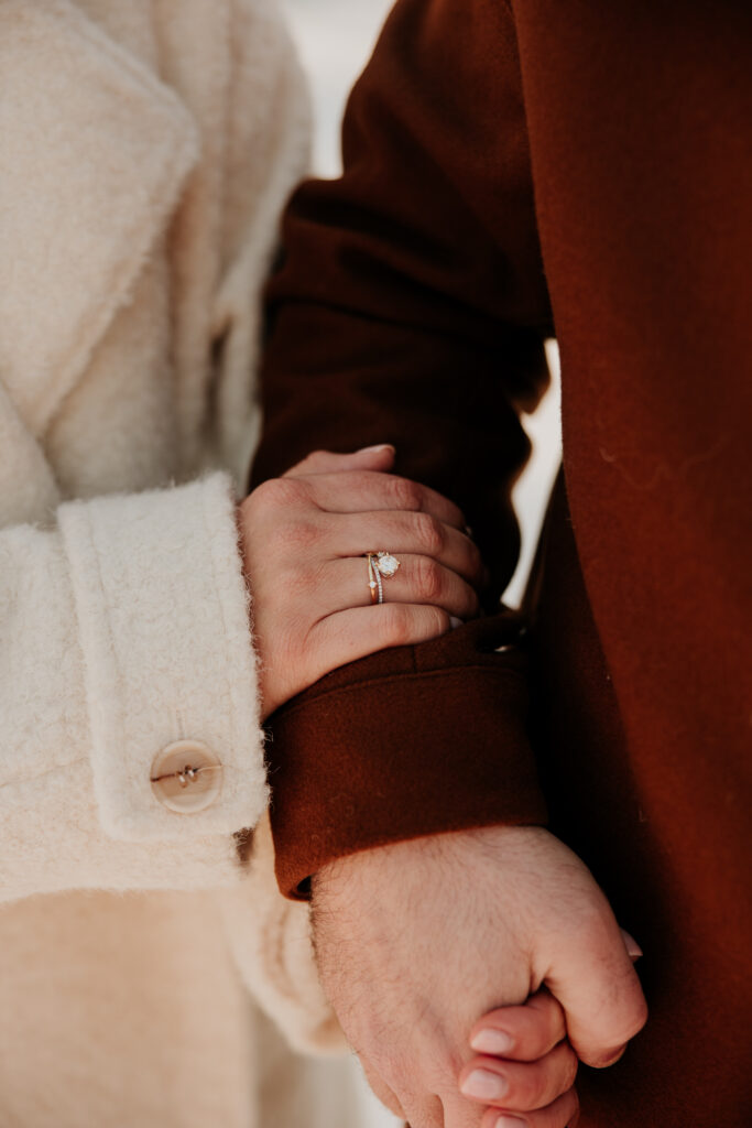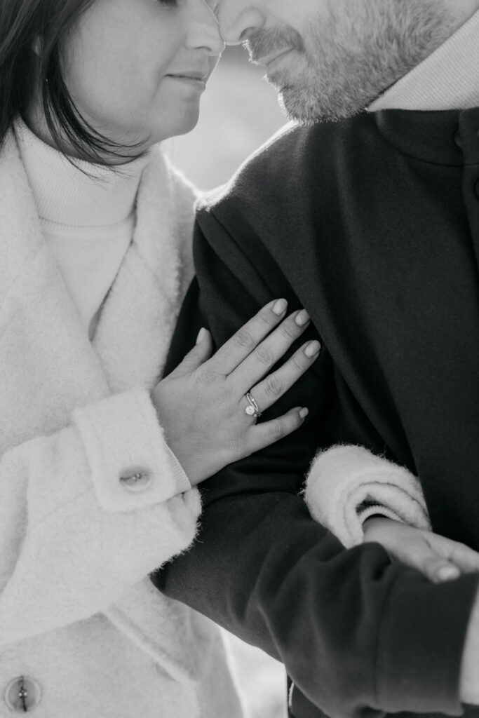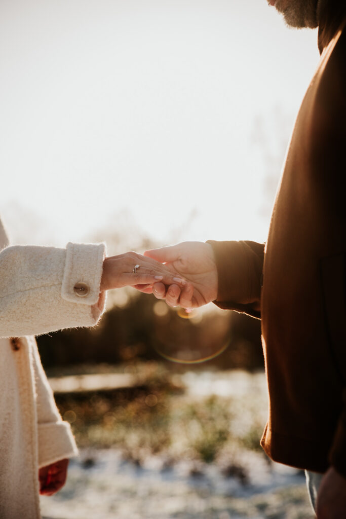 Tijdens zo’n verlovingsshoot probeer ik altijd een leuke mix te voorzien tussen foto’s specifiek rond de verloving en de ring, en anderzijds ook gewoon ‘neutrale’ koppelfoto’s die tijdloos zijn. Op deze manier heeft het koppel een goedgevulde galerij aan beelden, die ze ook na de aankondiging van de verloving nog kunnen gebruiken.