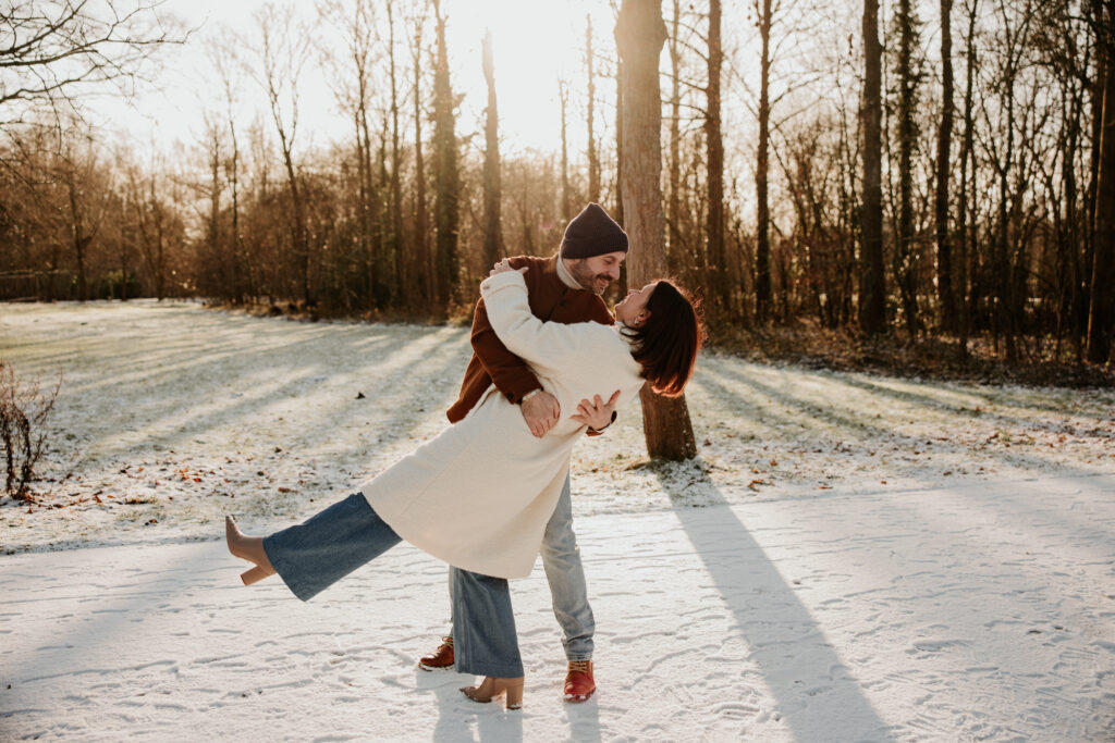 Sneeuw in België: het duurt meestal niet lang, dus als het moment zich aandient, kunnen we er maar beter van profiteren. Toen Tinneke en Joeri hun fotoshoot vastlegden, hadden ze echter nooit kunnen denken dat het weer hen zo goedgezind zou zijn. We besloten de shoot met één dag op te schuiven om te kunnen genieten van een laagje verse sneeuw. En te midden van al deze Winterse schoonheid, konden we zo mogelijk iets nog mooier vastleggen: twee mensen aan de start van hun ‘voor altijd’.